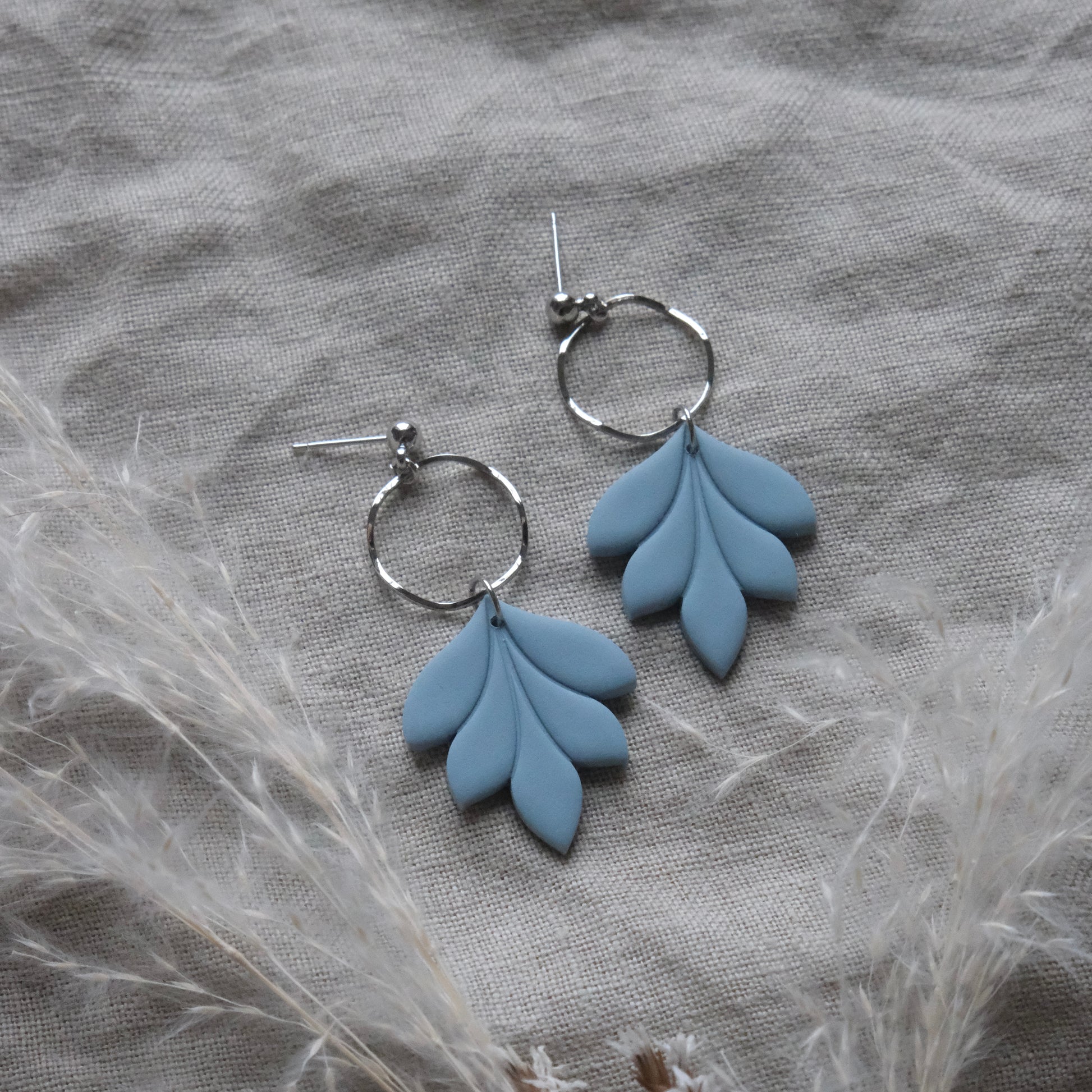 Bláth earrings in Hydrangea Blue and Silver. Lightweight, hypoallergenic earrings handmade from polymer clay.