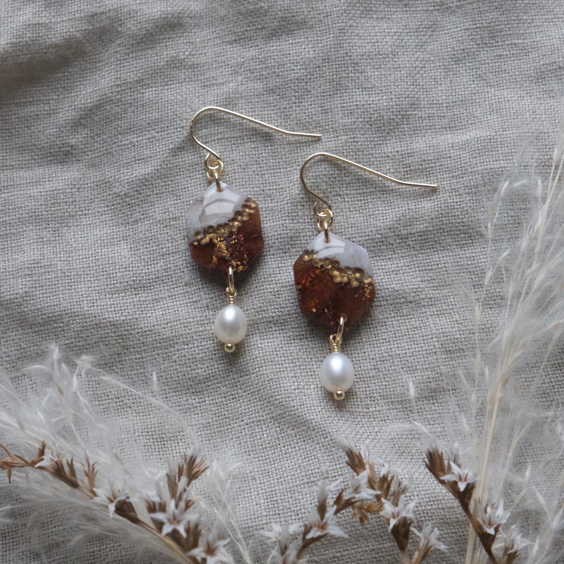 Aisling earrings in Double Chocolate and Gold. Lightweight, hypoallergenic earrings handmade from polymer clay. Approximately 4cm in length.