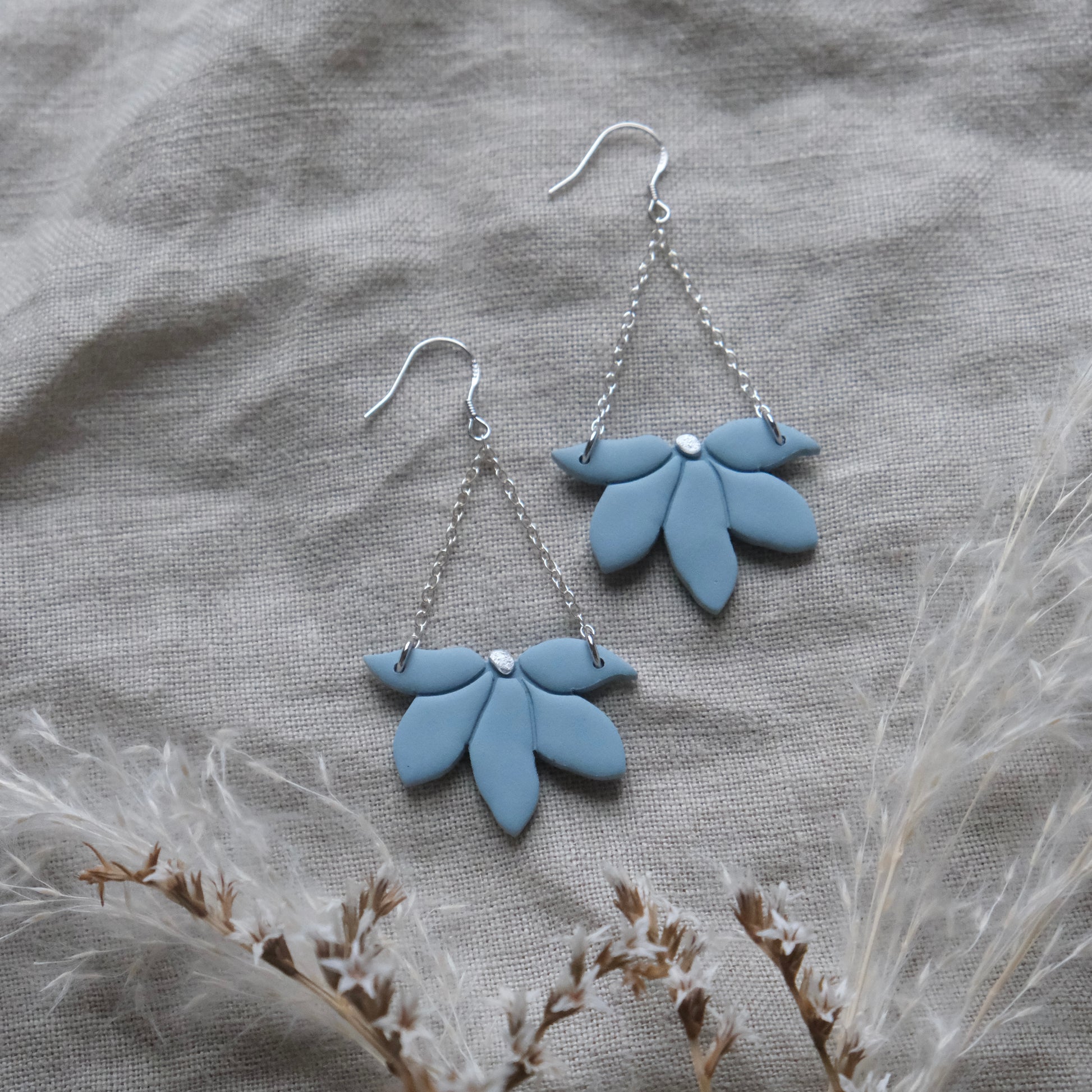 Blánaid earrings in hydrangea blue, with sterling silver chain. Lightweight, hypoallergenic earrings handmade from polymer clay.