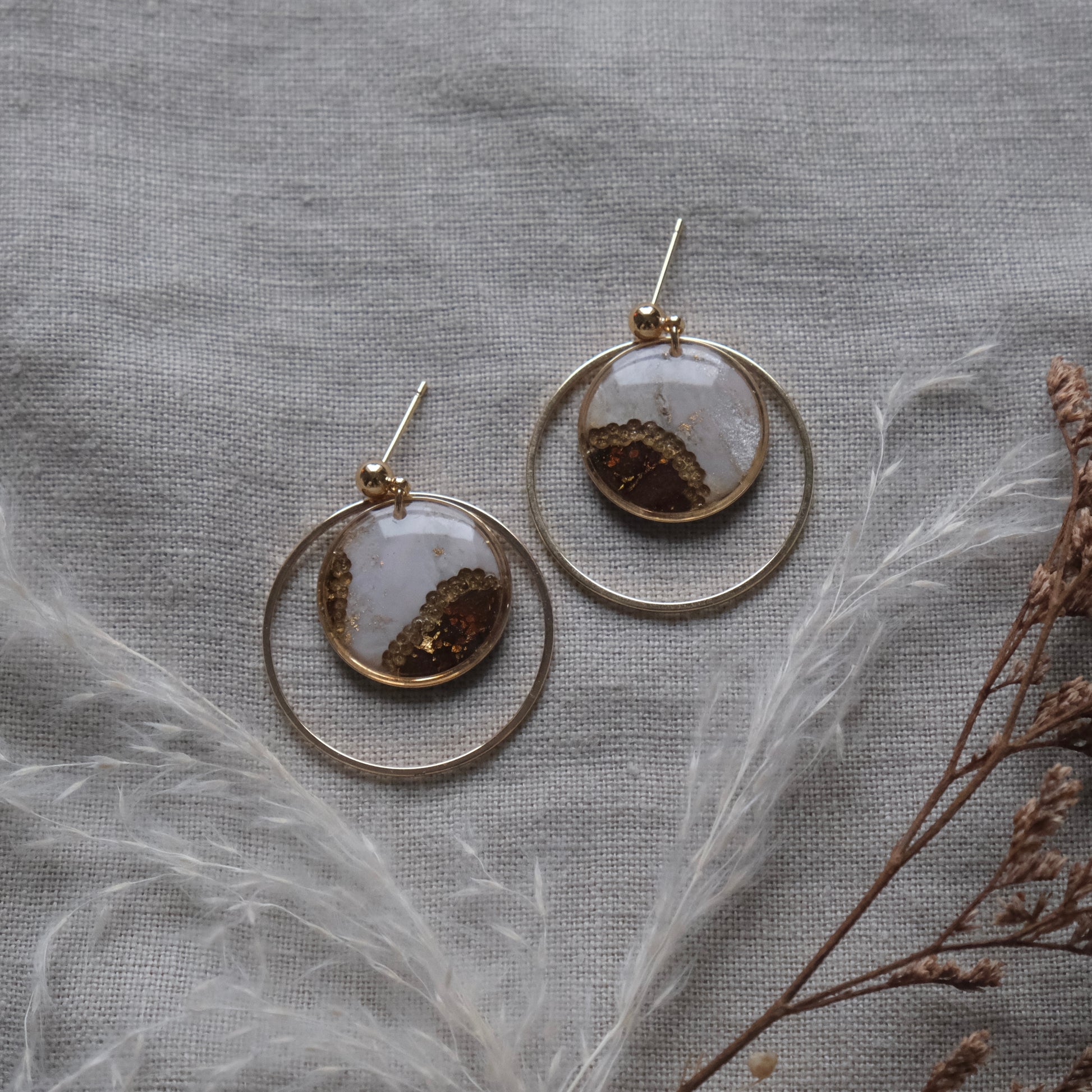 Ríona earrings in Double Chocolate & Gold. Lightweight, hypoallergenic earrings handmade from polymer clay. Approximately 4cm in length.